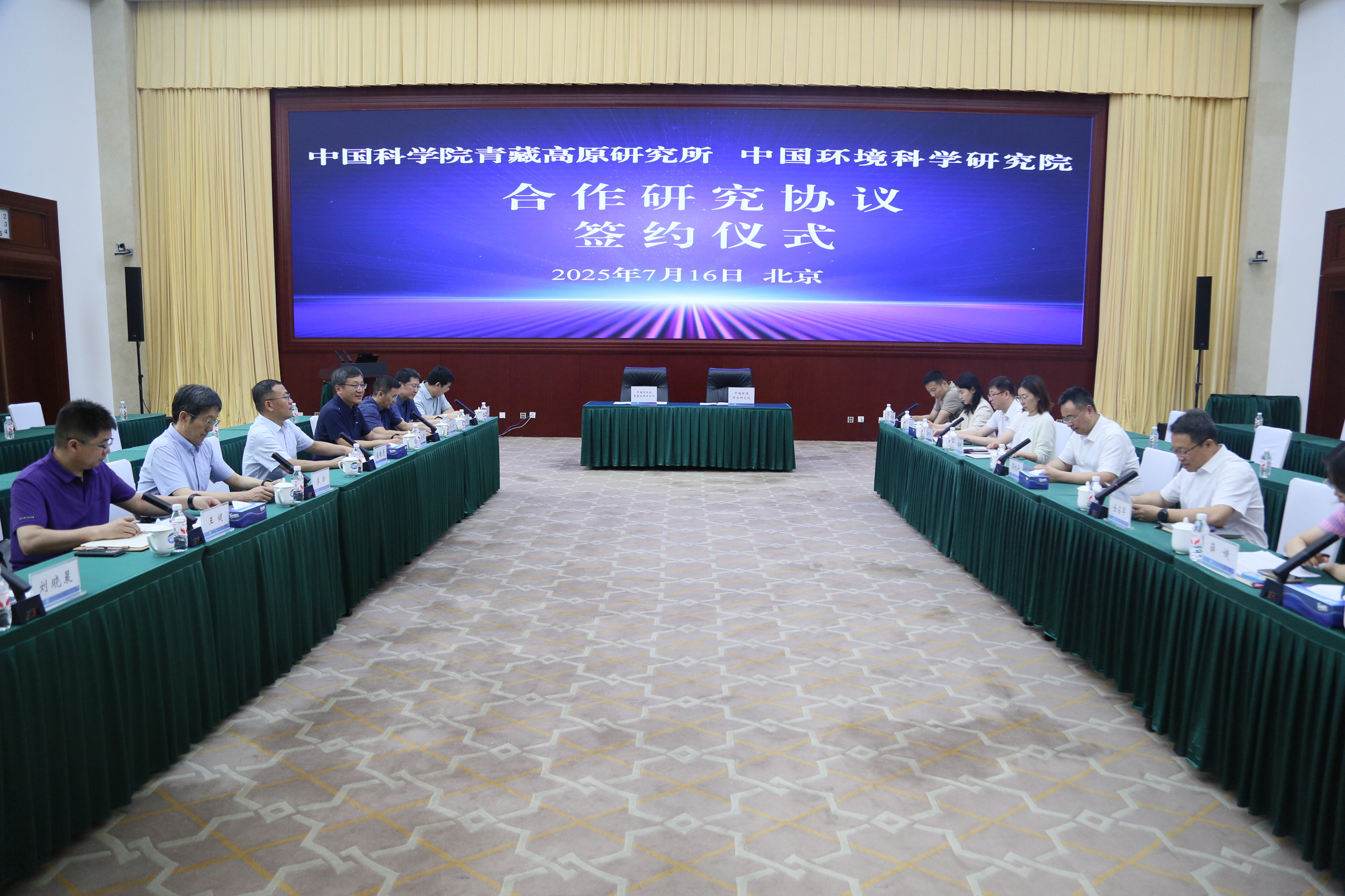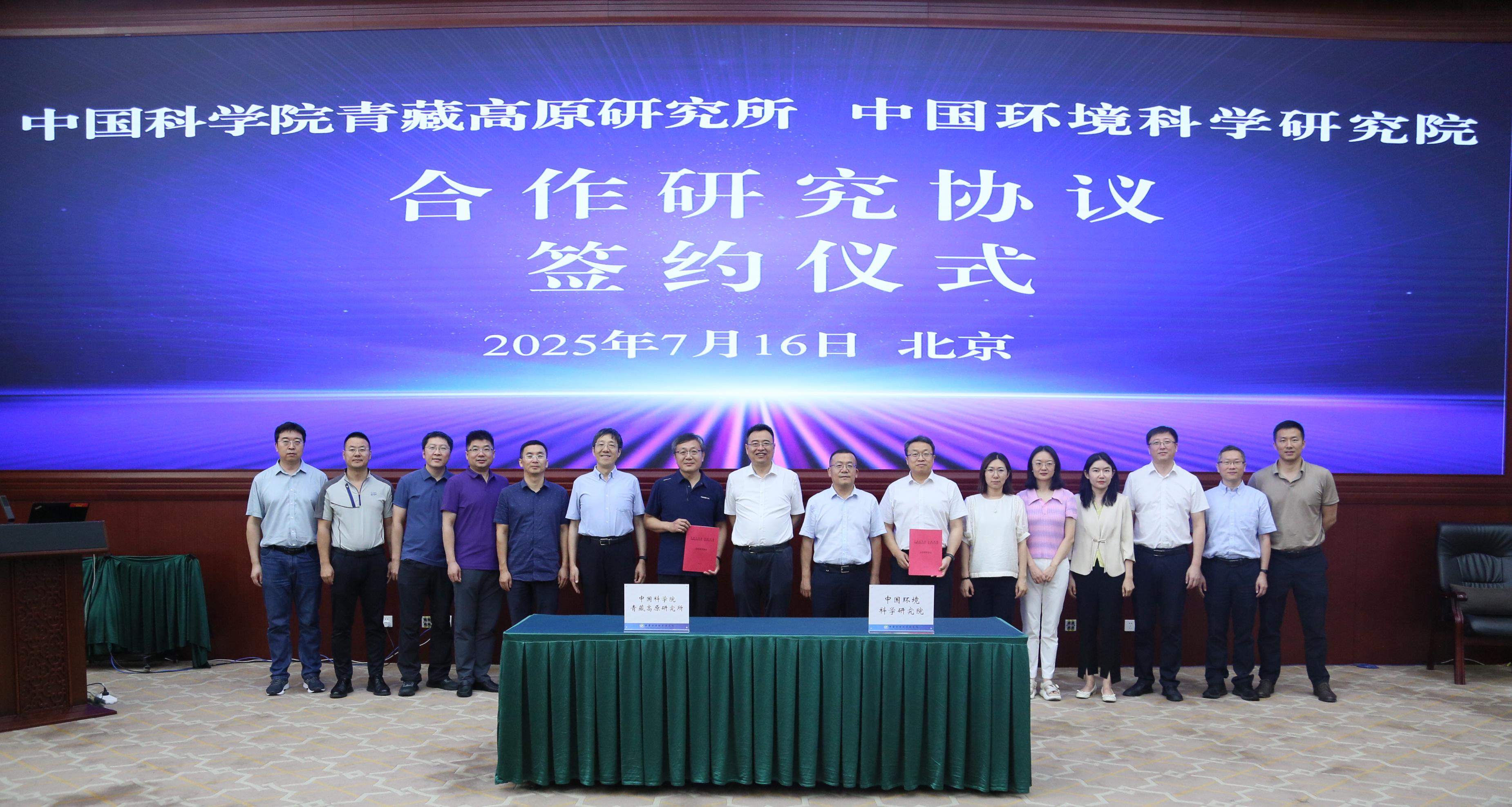 2025年7月16日, (以下简称中国环科院)与中国科学院青藏高原研究所(以下简称中科院青藏高原所)开展交流座谈并签署合作研究协议。中科院青藏高原所党委书记、副所长庄绪亮,中国环科院院长、党委副书记席北斗出席签约仪式。中科院青藏高原所副所长安宝晟、中国环科院副院长全占军分别代表双方签署协议。