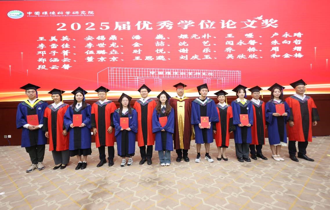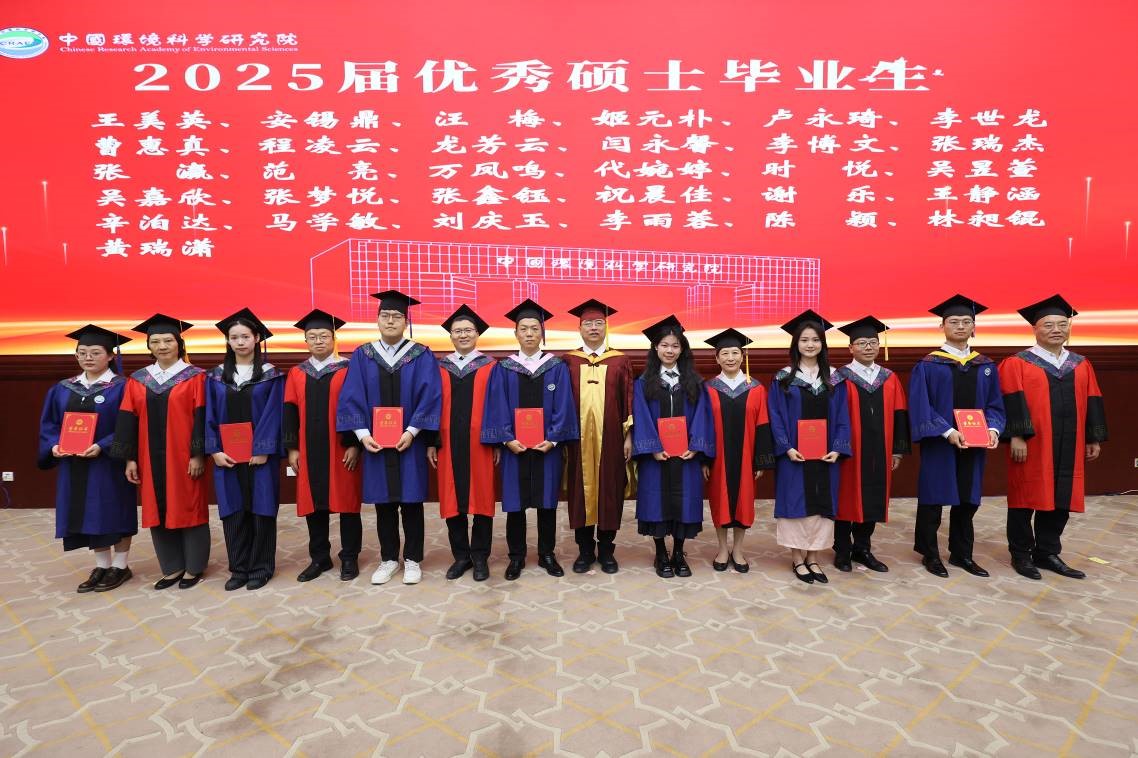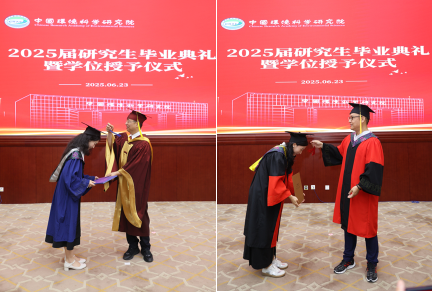 2025年6月23日, (以下简称中国环科院)举行2025届研究生毕业典礼暨学位授予仪式。会议宣读了学位授予决定和2025年院长奖学金奖、优秀学位论文奖和优秀毕业生奖的表彰决定。中国环科院院长、党委副书记席北斗,中国工程院院士吴丰昌为获得学位的研究生颁授证书、拨穗正冠;席北斗院长,党委书记、副院长刘春燕以及院领导班子成员为获奖者代表颁发获奖证书。毕业典礼由副院长全占军主持。首席科学家、职能部门主要负责人、全体毕业生、导师代表和毕业生家长代表等200余人出席。