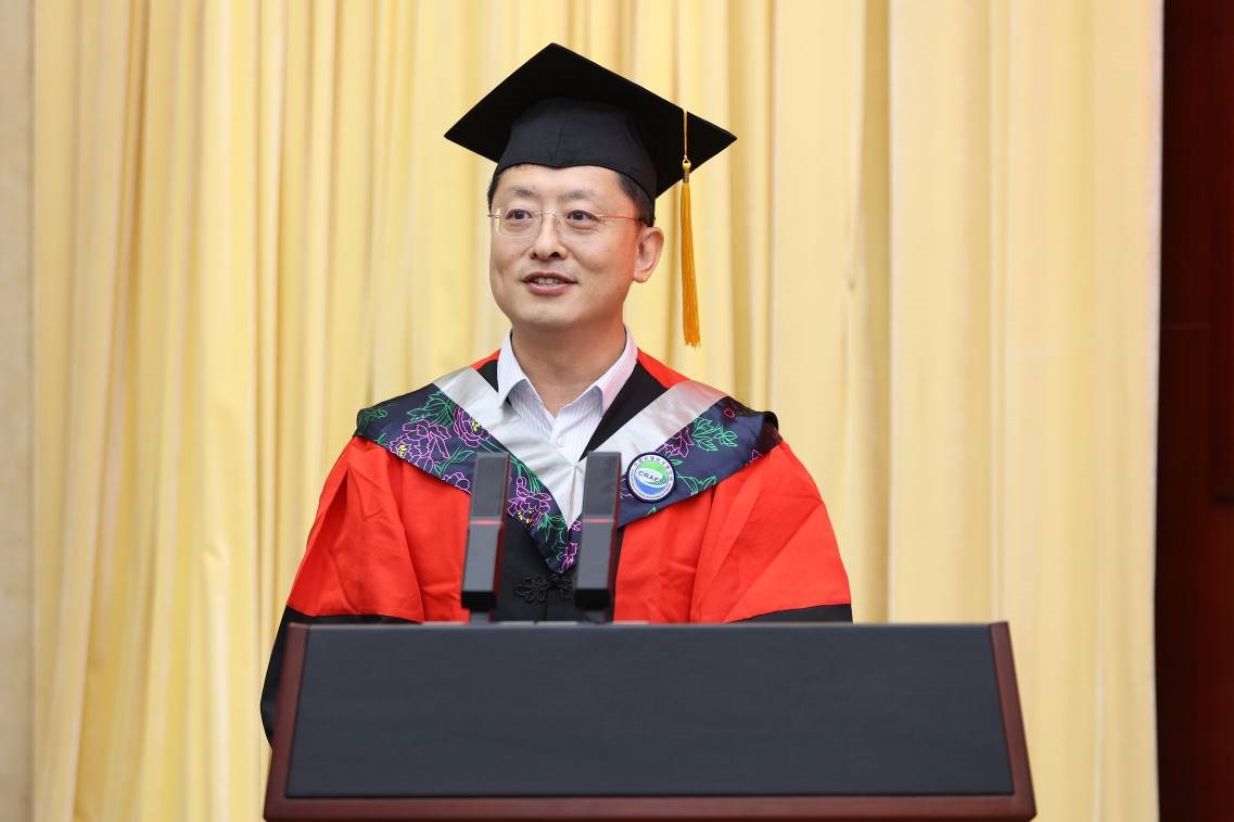 博士毕业生代表牛琳、硕士毕业生代表李世龙在发言中回顾了在环科院的求学经历和成长蜕变,表达了对环科院的不舍之情和对恩师的衷心感谢,并表示将始终铭记“顶天立地惠民,求实创新奉献”的院训,坚守科研报国的初心,继续为生态环境保护事业贡献力量。导师代表马瑾在发言中叮嘱同学们,要永葆善良之心,始终守护内心的光明;要锻造独立精神,跳出“内卷”,建立自己的坐标系,坚持找到真正的自我价值;要追寻生命欢愉,不必困于单一的成功定义,要活出生命的丰盈,成为完整的自己。